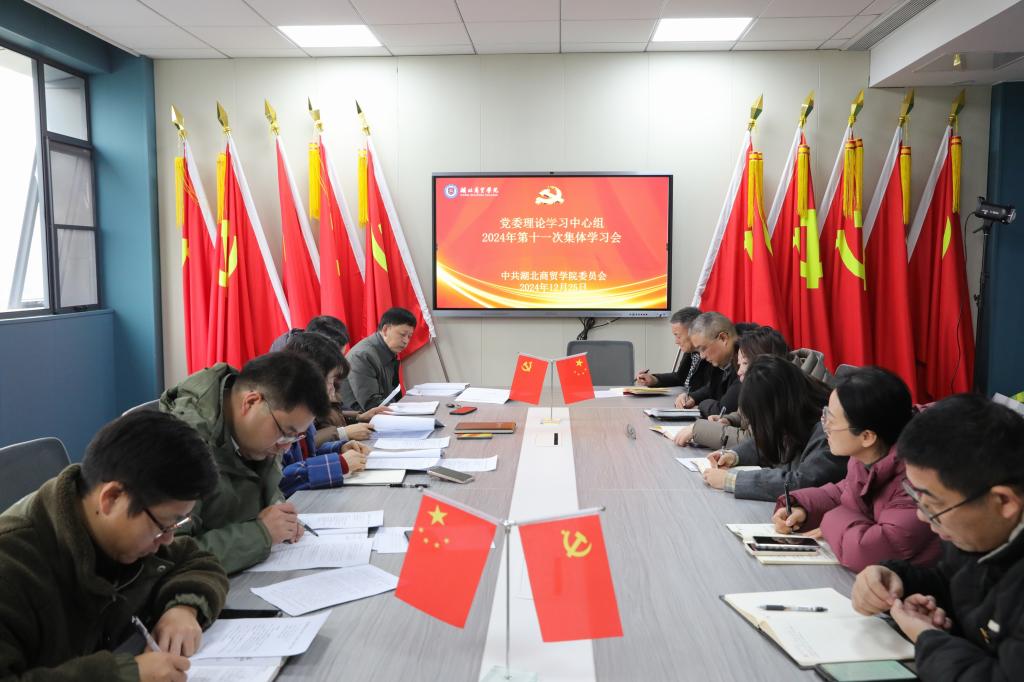 12月25日,学校召开2024年党委理论学习中心组第十一次学习会,认真传达学习2024年中央经济工作会议精神;习近平总书记在中共中央政治局第十八次集体学习时的重要讲话、习近平出席澳门特别行政区政府欢迎晚宴时发表的重要讲话、习近平关于国防和军队建设的重要讲话和指示批示精神以及《求是》杂志刊文《习近平:必须坚持守正创新》和第二十八次全国高校党的建设工作会议精神,研究学校贯彻落实措施。校党委副书记、纪委书记方爱荣主持会议并讲话,党委常委、副校长胡柳,党委常委、副校长程胜军出席会议。
