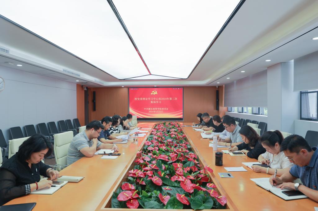 会议专题学习习近平总书记关于防止统计造假、树立和践行正确政绩观的重要论述,习近平总书记在二十届中央纪委三次全会上的重要讲话精神,习近平总书记关于注重家庭家教家风建设论述精神,习近平总书记在新时代推动西部大开发座谈会上的重要讲话精神,习近平总书记对学校思政课建设作出的重要指示,《中共湖北省委 湖北省人民政府关于奋力推进中国式现代化湖北实践加快建成中部地区崛起重要战略支点的意见》和中国共产党湖北省第十二届委员会第六次全体会议公报;并传达2024年高校统战工作会议精神和省委宣传部《关于贯彻落实<中国共产党党委(党组)理论学习中心组学习规则>的工作提示》。