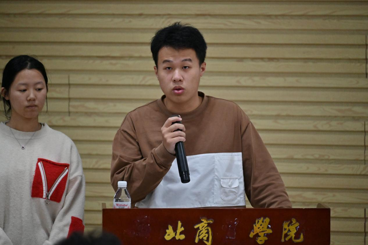 2024届大学生通讯社社长杨铭浩和杜伊凡同学分别代表咸宁校区分社和武汉校区分社发言。他们回顾了这一年大学生通讯社在思想建设、技能培训、新闻报道、活动策划等方面的成果与收获,也分享了自己与大学生通讯社共同成长的故事。他们鼓励新成员抓住机会,从零开始,讲好湖商故事,传播湖商声音,既能保持创新的锐气,又能守住新闻人的底线;既能拥抱新媒体技术,又能深耕内容品质;既要做校园故事的讲述者,更要成为青年成长的同行者。